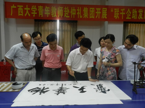 廣西大學(xué)藝術(shù)家、教授、青年教師——赴仲禮集團(tuán)開(kāi)展了“聯(lián)千企助發(fā)展”服務(wù)活動(dòng)