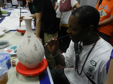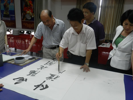 2012年5月5日下午16時(shí),廣西大學(xué)帥民風(fēng)書(shū)記、趙琳副院長(zhǎng)、葉萍副院長(zhǎng)率領(lǐng)廣西大學(xué)藝術(shù)家、教授、青年教師一行等40多人赴仲禮集團(tuán)開(kāi)展了“聯(lián)千企助發(fā)展”服務(wù)活動(dòng)。到訪的藝術(shù)家、教授、青年教師對(duì)仲禮產(chǎn)品的材質(zhì)、造型設(shè)計(jì)、工藝技術(shù)、花色花面等給予了高度贊賞,并對(duì)以后的校企合作達(dá)成了戰(zhàn)略性方案,預(yù)計(jì)此次活動(dòng)對(duì)提高仲禮的藝術(shù)瓷檔次起到了促進(jìn)作用?;顒?dòng)過(guò)程中,現(xiàn)場(chǎng)觀賞了帥民風(fēng)書(shū)記、閉理由大師等代表性藝術(shù)家、書(shū)法家的精湛繪畫(huà)、書(shū)法表演,公司的設(shè)計(jì)人員、繪畫(huà)人員等得到了名家的悉心指導(dǎo)。