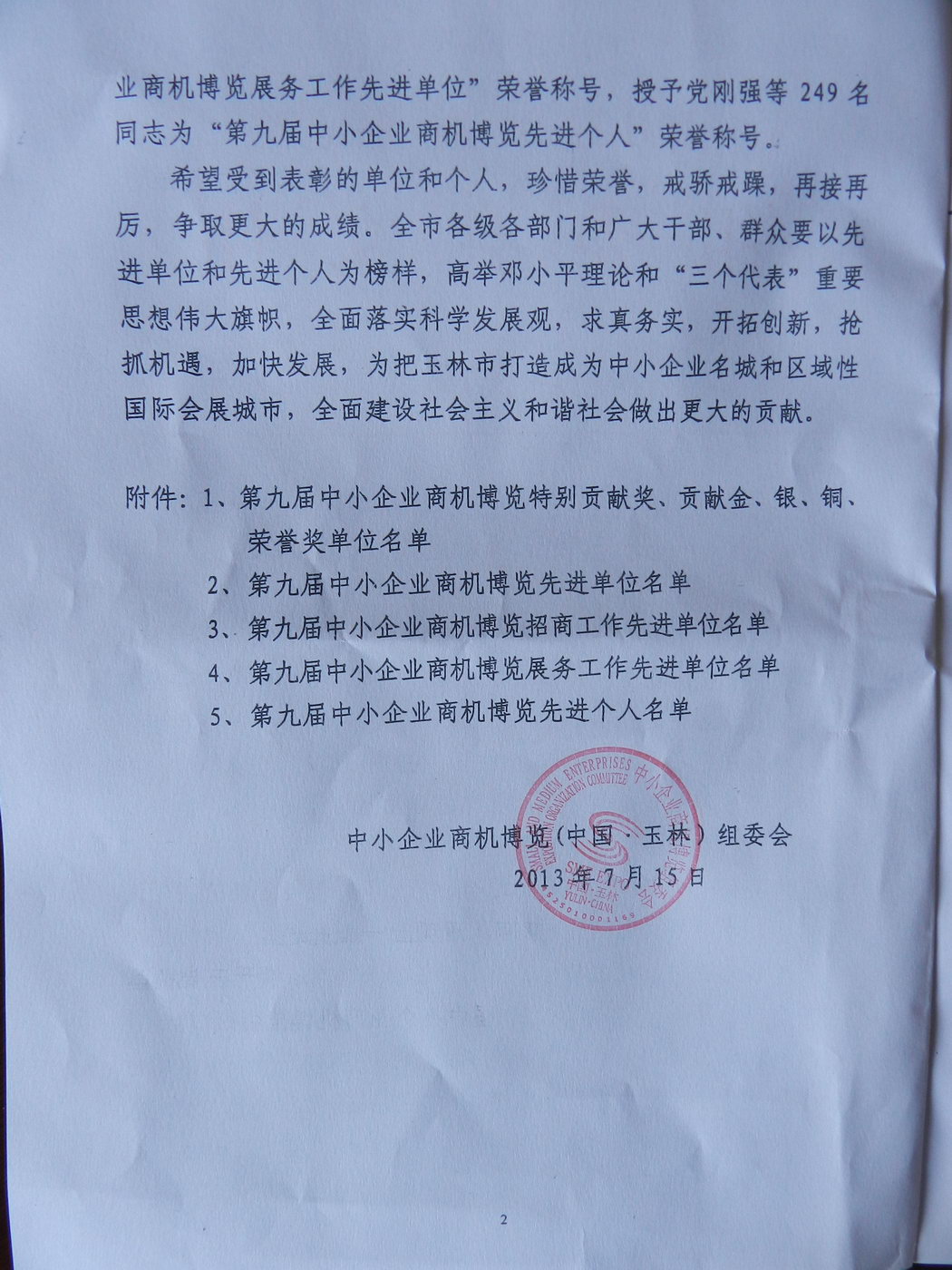 中小企業(yè)商機博覽(中國·玉林)組委會在2013年7月份授予了廣西仲禮企業(yè)集團公司第九屆中小企業(yè)商機博覽貢獻金獎